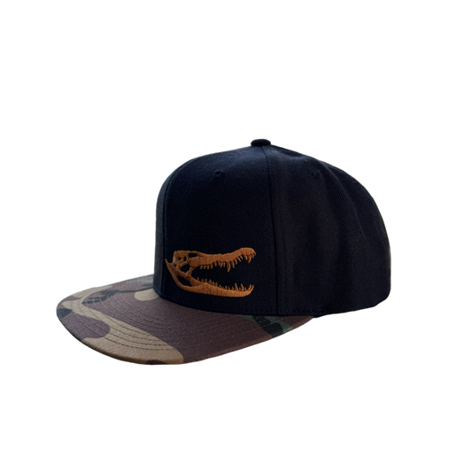 Black Hat with Camo Brim | GATOR SKULL | Black Cypress Outfitters